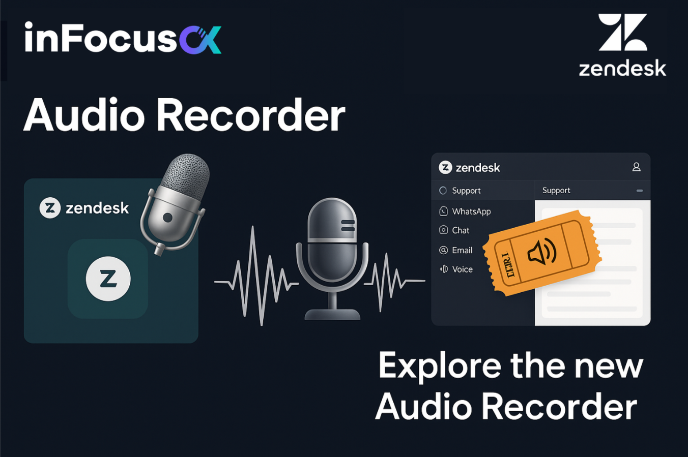 O Audio Recorder by inFocusCX é um aplicativo revolucionário que traz a praticidade de gravação e envio de áudios diretamente para a interface de tickets da Zendesk. Sem precisar de ferramentas externas ou processos complicados, sua equipe pode se conectar com os clientes de forma mais humana e eficiente.