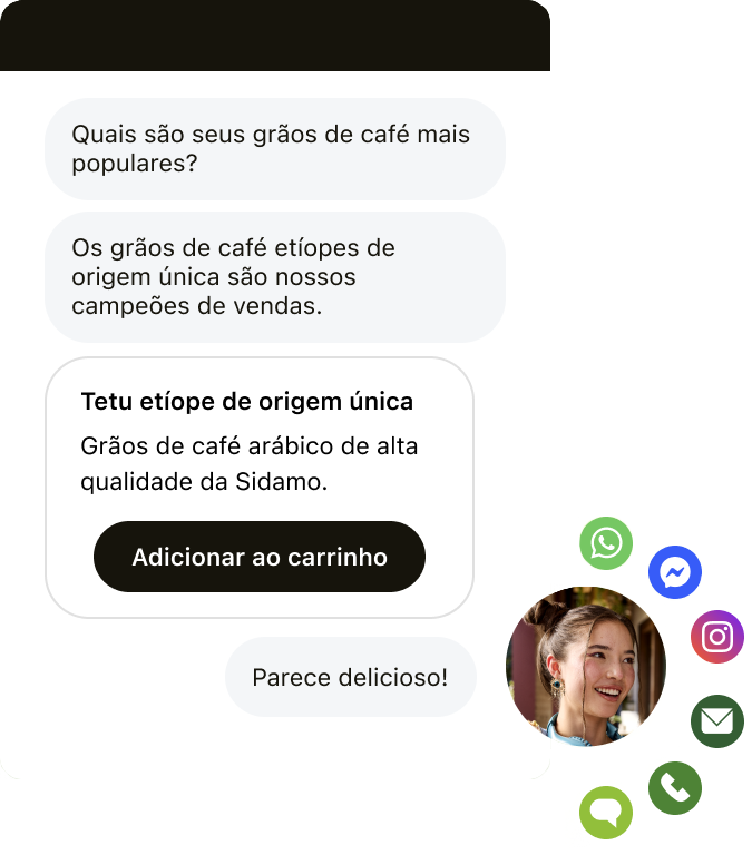 • Suporte rápido e personalizado em qualquer canal